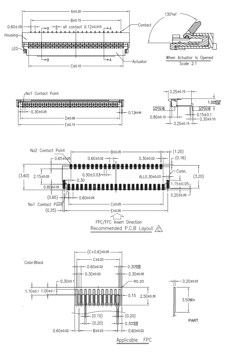 0.3MM Pitch FPC Connector H:1.0MM 13Pin FFC FPC Connector Product Item:FPC03-XX01X-B001 Housing:LCP UL94V-0 Contact: Phosphor Bronze Current Rating:0.2A Operating Voltage:30V 03MM Pitch FPC 13Pin Connector FFC FPC Connector Inquiry Send Email Datasheet