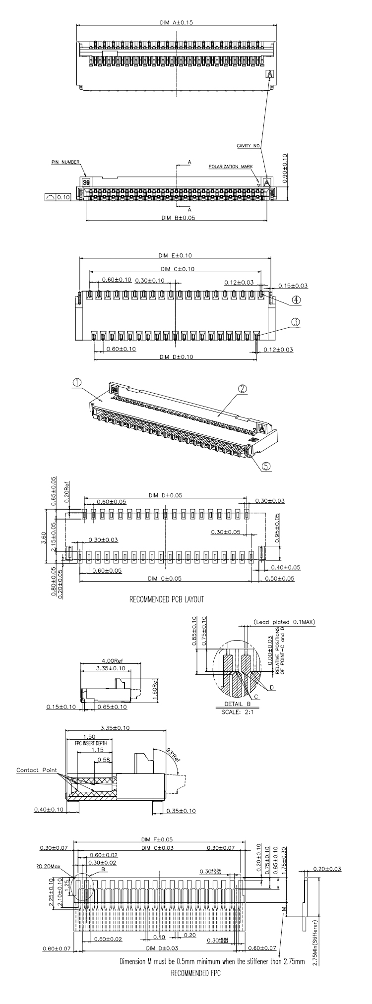 0.3MM Pitch FPC/FFC Contact Side Connector H=0.9MM 9-61P Vertical FPC Connector Product Item:FPC03-XXG1X-B002 Housing:Thermoplastic UL94V-O Contact: Phosphor Bronze Current Rating:0.2A Dielectric Withstanding Voltage:100 V R.M.S. 03MM Pitch FPC/FFC Contact Side Connector Vertical H=09MM 9-61Pin FPC Connector Inquiry Send Email Datasheet