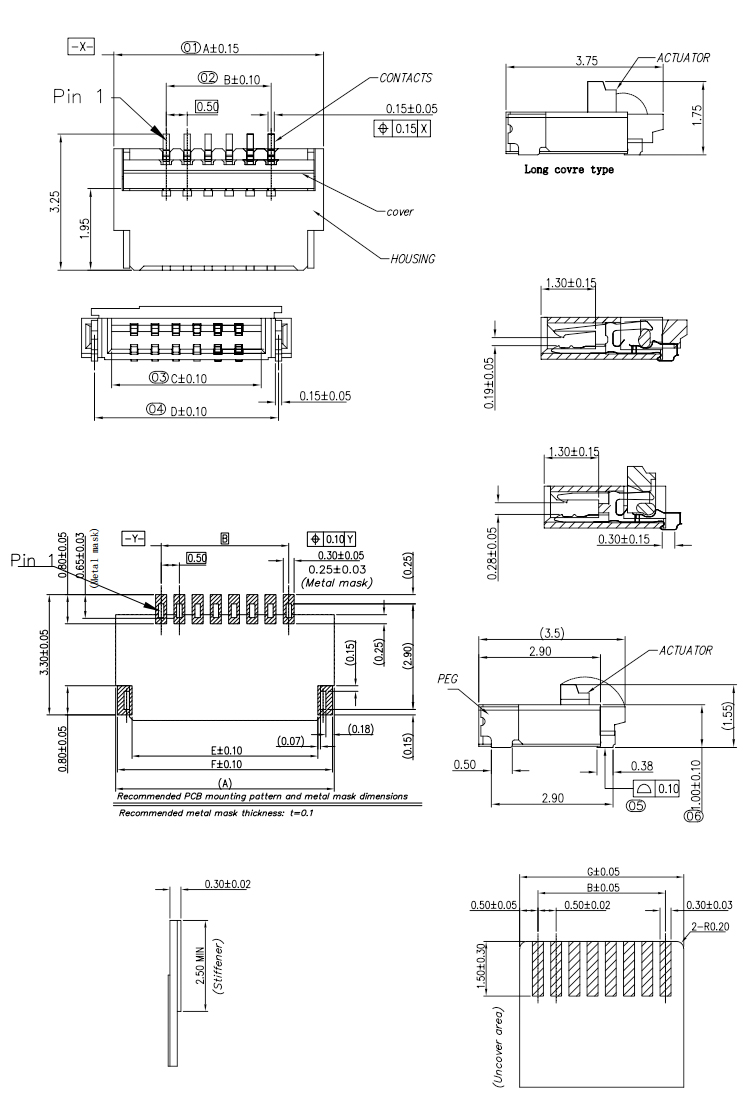 0.5MM Pitch FFC FPC Connector Right Angle Double Contact Type 1.0H Zif Connector Product Item:FPC0509-xxRL-TAG Housing:LCP UL94V-0 Contact:Copper Alloy Current Rating:0.5A Dielectric Withstanding Voltage:100 V R.M.S. 05MM Pitch FFC FPC Connector Right Angle 10H Zif Connector Inquiry Send Email Datasheet