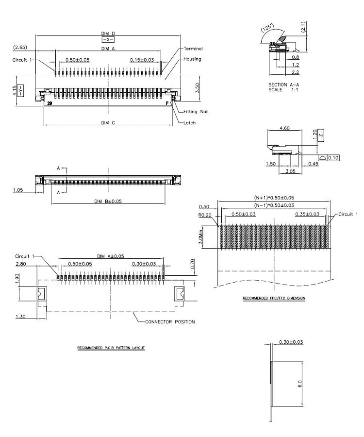 0.5MM Pitch FPC Connector Easy-on Right Angle SMT Type FPC Connector Product Item:FPC05-XXX1X-B010 Housing:High Temperature Thermoplastic with g.f,UL94V-O Contact:Copper Alloy Current Rating:1.5A Dielectric Withstanding Voltage:100 V R.M.S. 05MM Pitch FPC Connector Right Angle SMT Type FPC PCB Connector Inquiry Send Email Datasheet
