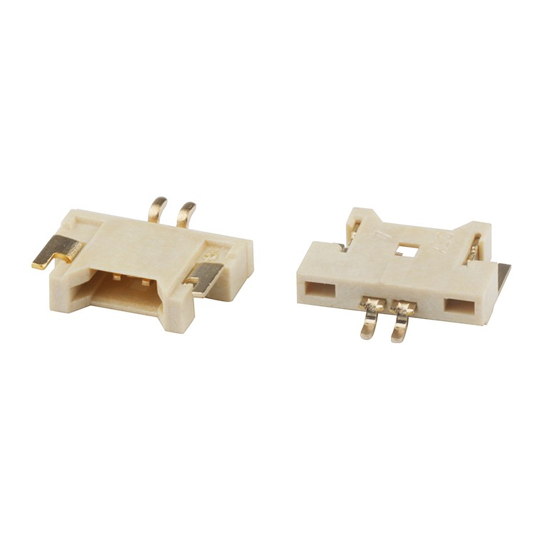 1.25mm Pitch SMT Type Right Angle 2Pin Natural Color Wire To Board Connector Product Item:WTB1A19X-XXXRA-X0XXR Housing:Thermoplastic High Temp.UL94V-O Actuator:Thermoplastic High Temp. UL94V-O Contact:Copper Alloy Fitting Nail:Copper Alloy 2Pin Natural Color 125mm Pitch SMT Type Right Angle Wire To Board Connector Inquiry Send Email Datasheet