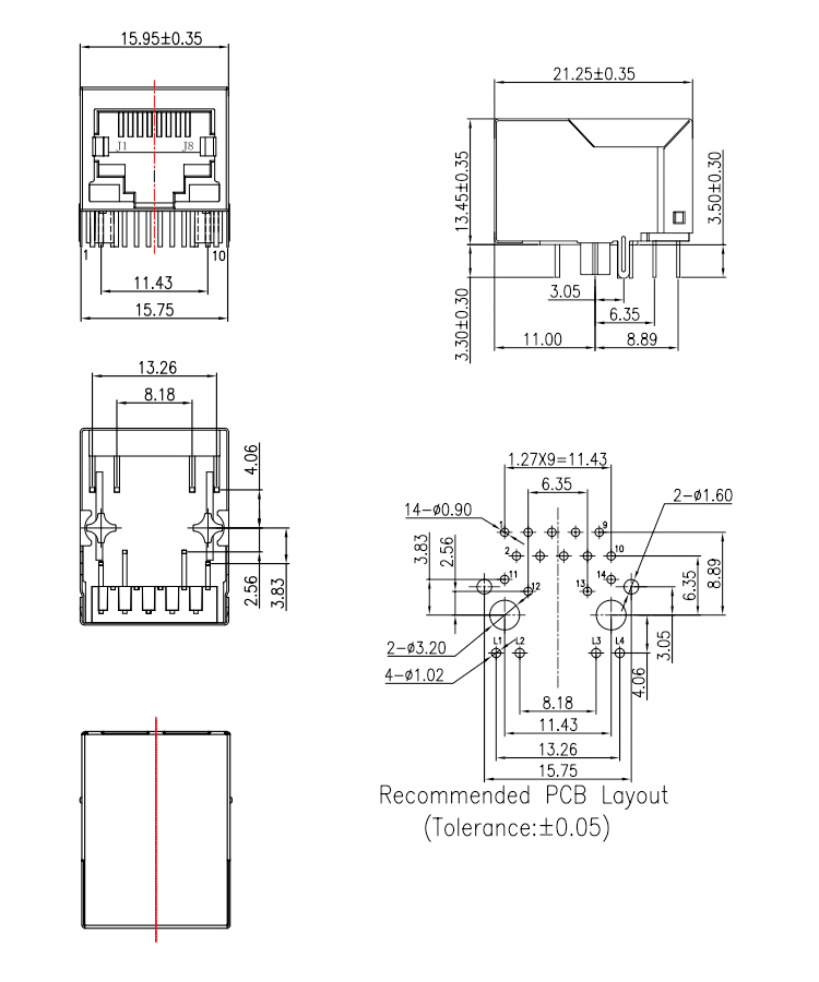 14Pin Right Angle Dip Type RJ45 Female Ethernet Connector with Leds Product Item:RJ01-31CX-108 Housing:LCP UL94V-O Contact: Phosphor Bronze Current Rating:3A Dielectric Withstanding Voltage:500V AC/rms 14Pin Right Angle Through Hole RJ45 Female Ethernet Connector with Leds Inquiry Send Email Datasheet