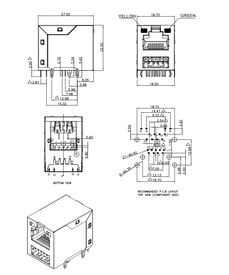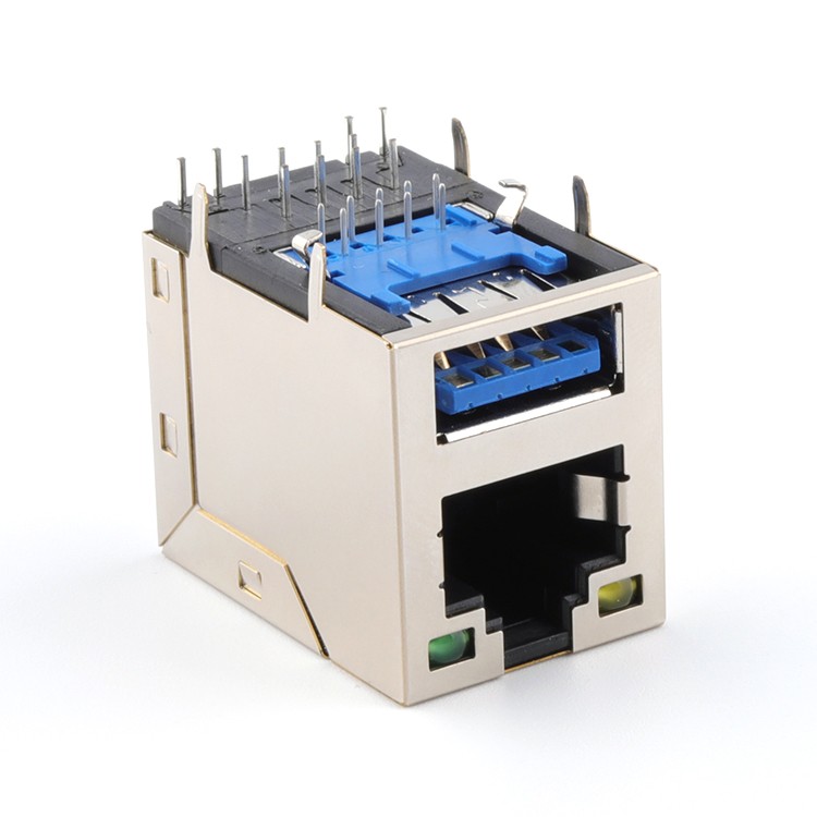 1x1 Single Port RJ45+USB 3.0 Female Connector with Yellow-Green Leds Product Item:RJU3001-X50X-005 Housing : Thermo plastics,P B T ,B K,UL94V-0. Contact : Phosphor Copper Current Rating:1.5A Shell : C2680 1x1 Single Port RJ45+USB 30 Female Connector with Leds Inquiry Send Email Datasheet