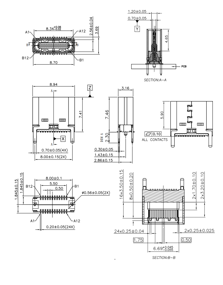 24Pin USB C Female Connector Vertical Mount SMT Type USB 3.1 C Female Socket Connector Product Item:U06-CFXX5R-076-3 Housing:PA9T BLACK UL94V-0 Contact:Copper Steel Current Rating:5A Dielectric Withstanding Voltage:100 V R.M.S. USB C Female Connector Vertical Mount SMT Type USB 31 C 24Pin Female Connector Inquiry Send Email Datasheet