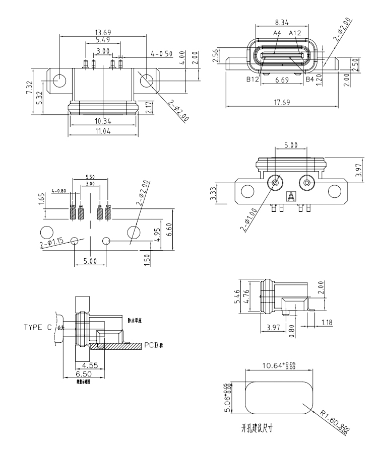 4Pin IP68 Waterproof USB C Type Female SMT Connector with Waterproof Ring Product Item:U06-CFXX5R-W114 Housing:PA9T(30%G.F) Contact: Phosphor Bronze Current Rating:3A Dielectric Withstanding Voltage:100 V R.M.S. 4Pin IP68 Waterproof USB C Type Female SMT Connector for Mobile Phone Inquiry Send Email Datasheet