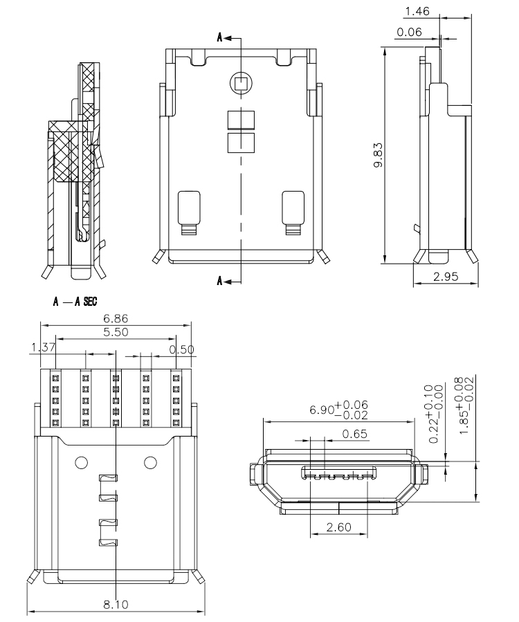 5P Micro USB B Type Female Socket Connector for Wire Soldering Product Item:U01-BFXX5R-1302 Housing:High temp. Thermo plastics,UL94V-0 Contact:Copper Alloy Shell:Copper Alloy Current Rating:1A 5P Vertical Micro USB B Type Female Socket Connector for Wire Soldering Inquiry Send Email Datasheet
