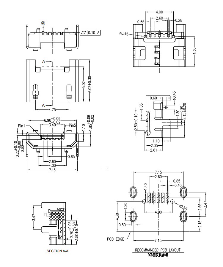 5Pin SMT Crimping Type Micro USB 2.0 B Type Female Charging Port Connector Product Item:U01-BFXX5R-711 Housing:High Temperature Thermoplastic with g.f,UL94V-O Contact:Copper Alloy Current Rating:1.8A Dielectric Withstanding Voltage:100 V R.M.S. SMT Crimping Type Micro USB 20 B Type 5Pin Female Charging Port Connector Inquiry Send Email Datasheet