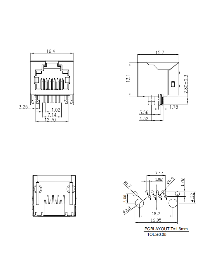 90Degree DIP Type Single Port RJ45 8P8C Female Connector Product Item:RJ01-X5XX-011-V1 Housing:Glass Filled Polyester UL94V-0 Contact: Phosphor Bronze Current Rating:1.5A Dielectric Withstanding Voltage:500V AC/rms 90Degree DIP Type Single Port RJ45 8P8C Female Socket Connector Inquiry Send Email Datasheet