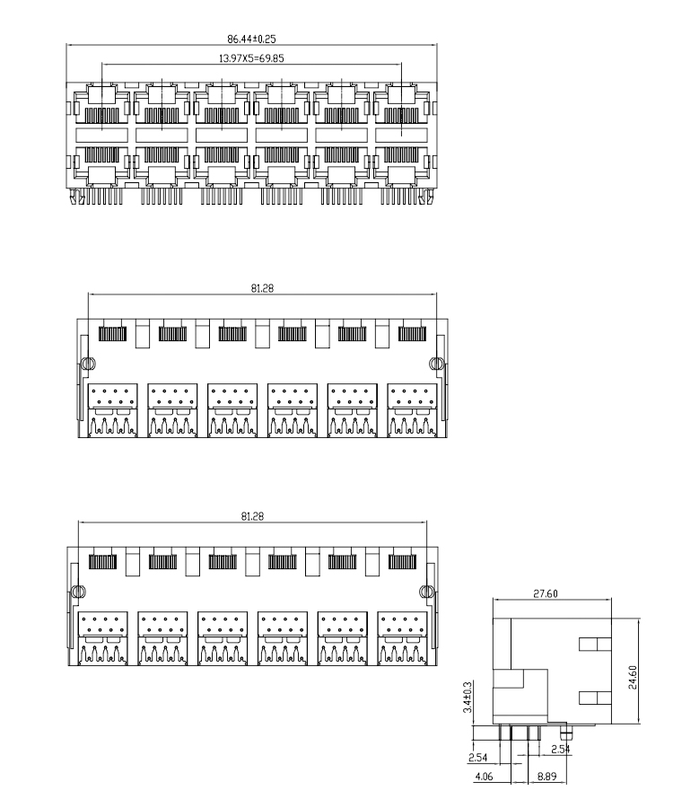 90Degree Dip Type 2X6 Port RJ45 Female Connector RJ45 Female PCB Connector Product Item:RJ01-X50X-113 Housing:PBT UL94V-0 Contact: Phosphor Bronze Current Rating:1.25A Dielectric Withstanding Voltage:500V AC/rms Right Angle Dip Type 2X6 Port RJ45 Female Connector RJ45 Female PCB Connector Inquiry Send Email Datasheet