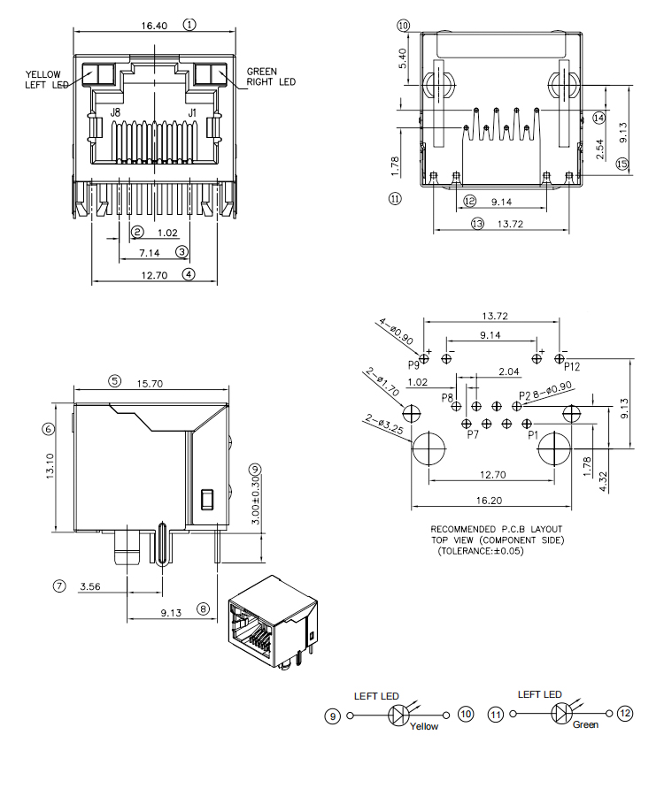 90Degree Right Angle DIP Type RJ45 Female Connector with LED Product Item:RJ01-X1CX-084 Housing:High Temp. Thermoplastics Gender:Female Contact:Copper Alloy Shell:Copper Alloy Right Angle DIP Type RJ45 8P Female Connector with LED Inquiry Send Email Datasheet