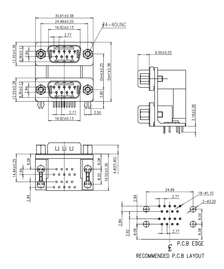 90Degree Through Hole D-SUB 9P Male To D-SUB 9P Male Connector with Screw Product Item:DL101X-18SX511-BX320 Housing: PBT+30%Glass Fiber,UL94V-0 Contact:Copper Alloy Current Rating:1.0A Dielectric Withstanding Voltage:1000 V R.M.S. Dual Port Through Hole D-SUB 9P Male To D-SUB 9P Male Connector with Screw Inquiry Send Email Datasheet