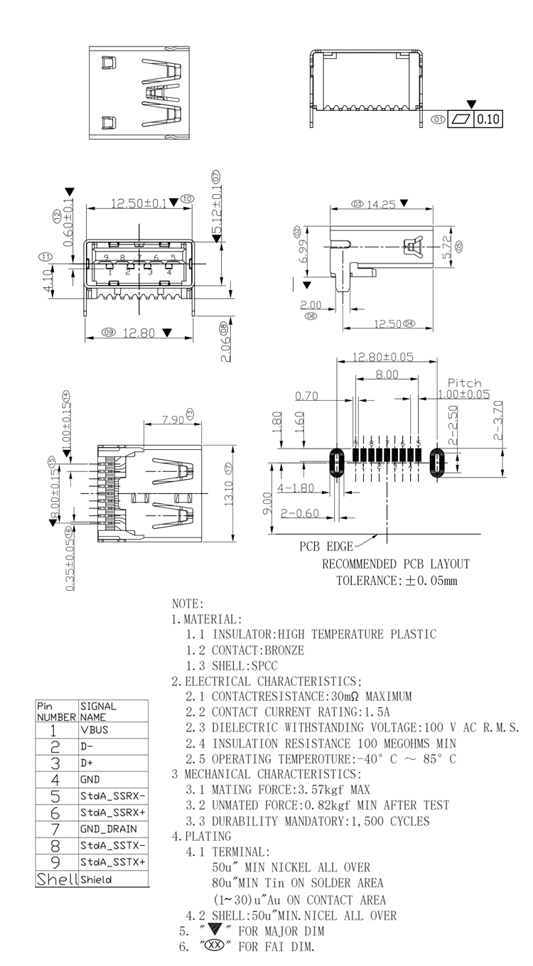 9P Female USB 3.0 A type Female Connector SMT type Product Item:U03-AFXAXX-3007-V2 Gender: Female Pin number: 9Pin Color: Blue Insulator: LCP 9P Female USB 30 A type Female Connector SMT type Inquiry Send Email Datasheet