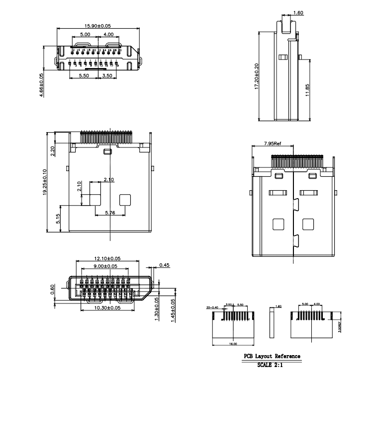 DP Male Connector DisplayPort 20Pin Male Connector For 1.6mm PCB Product Item:DP09-MXXXX-003 Housing:LCP+30%G/F,UL 94V-0 Contact:C2680-H T=0.20mm Current Rating:1.5A Dielectric Withstanding Voltage:100 V R.M.S. DP Male Connector DisplayPort 20Pin Male PCB Connector Inquiry Send Email Datasheet