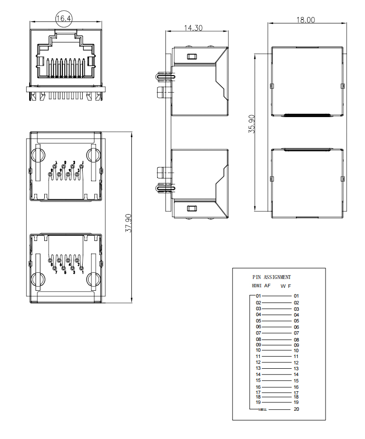 Dual Port RJ45 8P8C Female To RJ45 Female Network PCB Adapter Product Item:RJFTORJF-001 Housing:Glass Filled Polyester UL94V-O Black Contact:Copper Alloy Current Rating:1.5A Dielectric Withstanding Voltage:125 V R.M.S. RJ45 Connector Dual Port RJ45 8P8C Female To RJ45 Female Network PCB Adapter Inquiry Send Email Datasheet