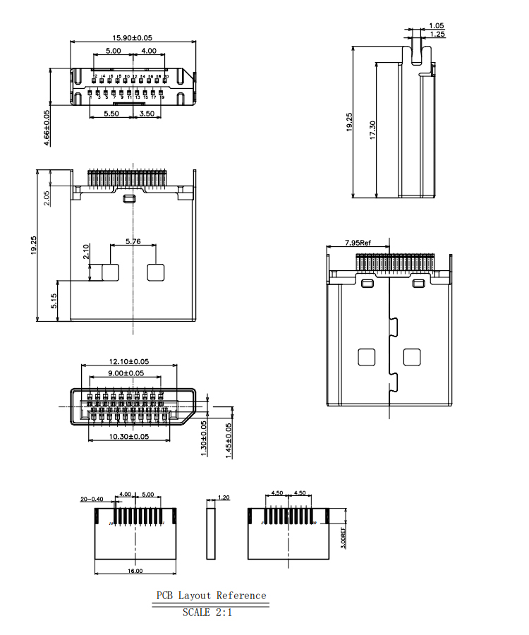 Dual Row Nickel Plated DP 20Pin Male Connector For 1.2MM PCB Product Item:DP09-MXXXX-003-V5-A Housing:LCP+30%G/F,UL 94V-0 Contact:C2680R-H T=0.20±0.01mm Current Rating:1.5A Dielectric Withstanding Voltage:100 V R.M.S. Dual Row Nickel Plated DisplayPort DP 20Pin Male Connector For 12MM PCB Inquiry Send Email Datasheet
