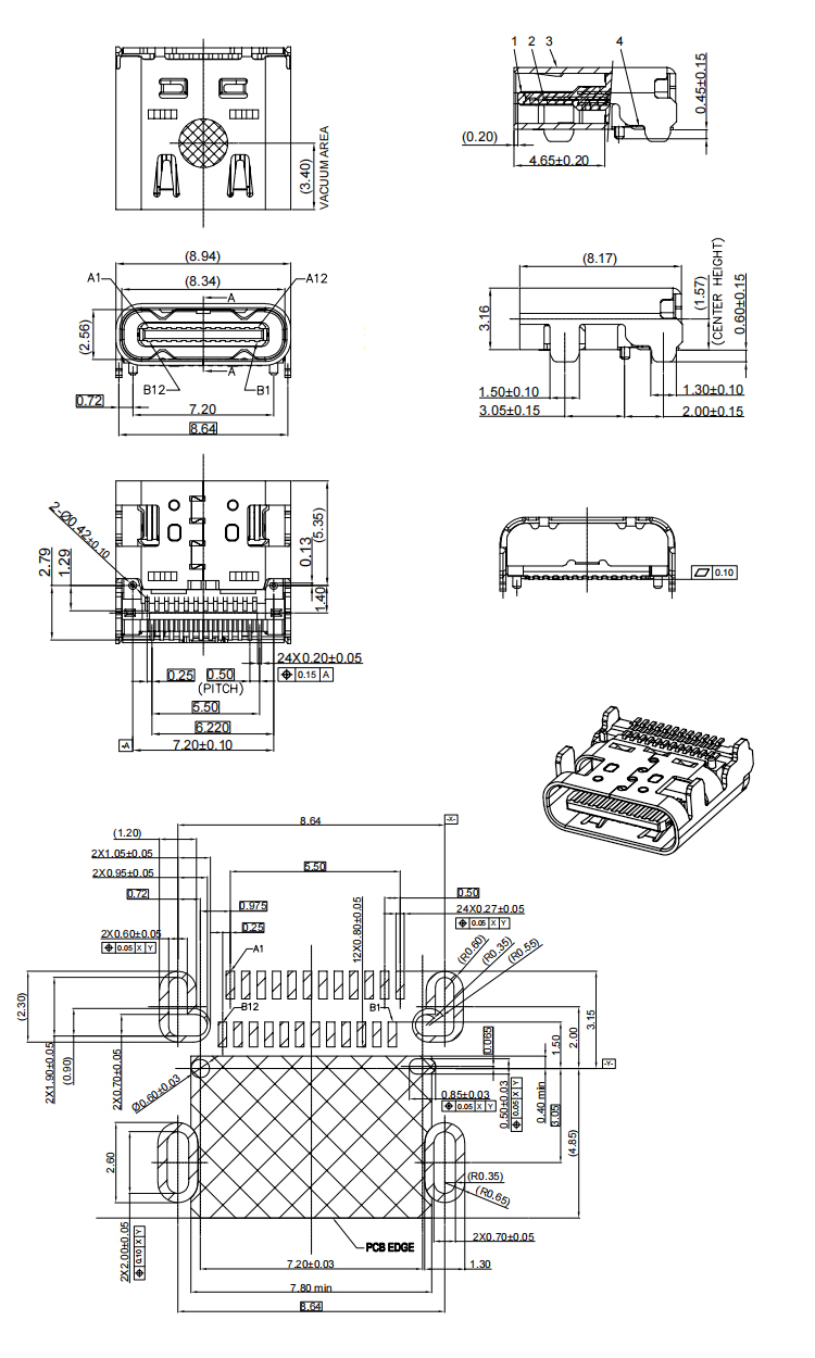 Dual SMT L=8.17MM Top Mount USB 4.0 Type C 24Pin Female Connector Product Item:U06-40CF1X5R-001-V2 Housing:PA9T Contact:C18140 Current Rating:5A Dielectric Withstanding Voltage:100 V R.M.S. Dual SMT L=817MM Top Mount 24Pin USB 40 Type C Female PCB Connector Inquiry Send Email Datasheet