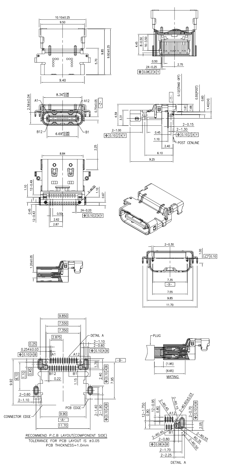 Dual SMT USB C Connector Right Angle Type 24Pin USB 4.0 C Female Connector Product Item:U06-40CFXX5R-009 Housing:LCP UL94V-0 Contact:Copper Alloy Current Rating:5A Dielectric Withstanding Voltage:100 V R.M.S. Dual SMT USB C Connector 90 Degree 24Pin USB 40 C Type Female Connector Inquiry Send Email Datasheet
