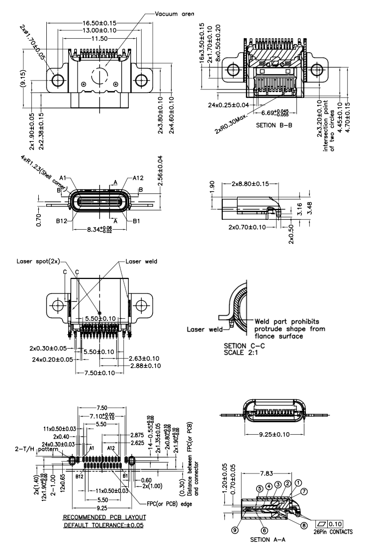 Female USB Connector Mid Mount 24Pin USB 4.0 C Type Female Socket Connector Product Item:U06-40CFXX5R-005 Housing:High Temperature Plastic with g.f,UL94V-O Contact:Copper Alloy Current Rating:5A Dielectric Withstanding Voltage:100 V R.M.S. Fast Charge Female USB Connector Mid Mount 24Pin USB C Type Female Connector Inquiry Send Email Datasheet