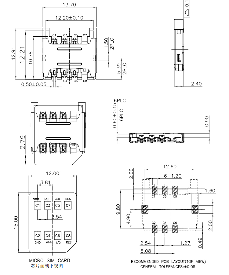 Gold Flash Plated 2.40H 6Pin SMT Type Micro SIM Card Connector Product Item:MCSIM-06XX5R-013 Housing:LCP UL94V-0 Contact:Copper Alloy Current Rating:1.5A Dielectric Withstanding Voltage:500V AC/rms Gold Flash 240H 6Pin SMT Type Micro SIM Card Connector Inquiry Send Email Datasheet
