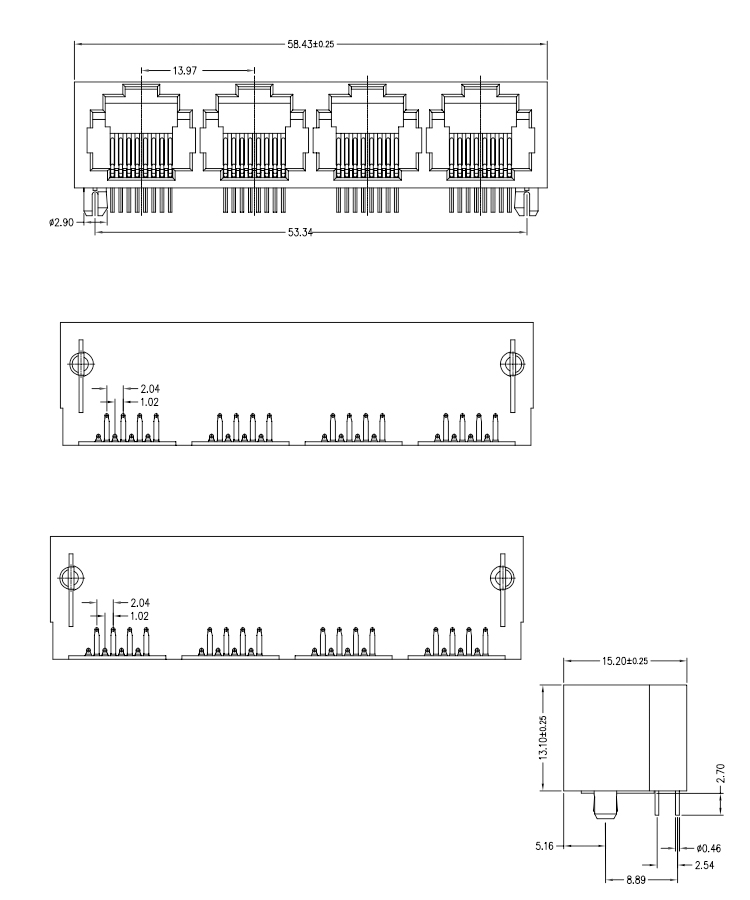 Gold Flash Plating 90Degree 1X4 Port DIP Type RJ45 8P8C Female Connector Product Item:RJ01-X5XX-096 Housing:Thermo Plastic UL94V-0 Gender:Female Current Rating:1.5A Dielectric Withstanding Voltage:500V AC/rms 90Degree 1X4 Port DIP Type RJ45 8P8C Female Connector Inquiry Send Email Datasheet