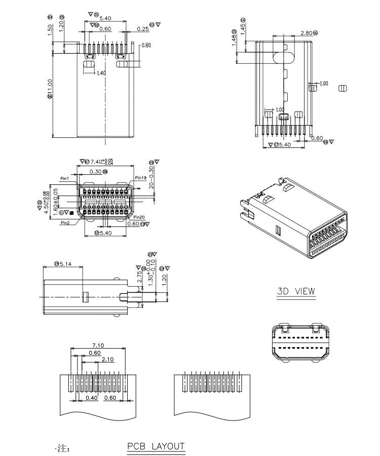 Gold Plated Splint 1.2MM DisplayPort Mini DP 20P Male PCB Connector Product Item:MDP09-MXXXX-003-V2-B Housing:LCP UL94V-0 Contact:C5191 Current Rating:0.5A Dielectric Withstanding Voltage:300V AC/rms Gold Plated DisplayPort Male Connector Splint 12MM Mini DP 20P Male PCB Connector Inquiry Send Email Datasheet