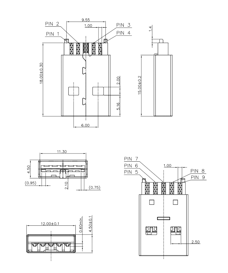 Gold Plating Vertical USB 3.0 A Type Male 5+5P Soldering Connector Product Item:U03-1MXAXX-0004 Housing:PBT Contact:Copper Alloy Current Rating:1.8A Dielectric Withstanding Voltage:100 V R.M.S. Gold Plating 180Degree USB 30 A Type Male 5+5P Soldering Connector Inquiry Send Email Datasheet
