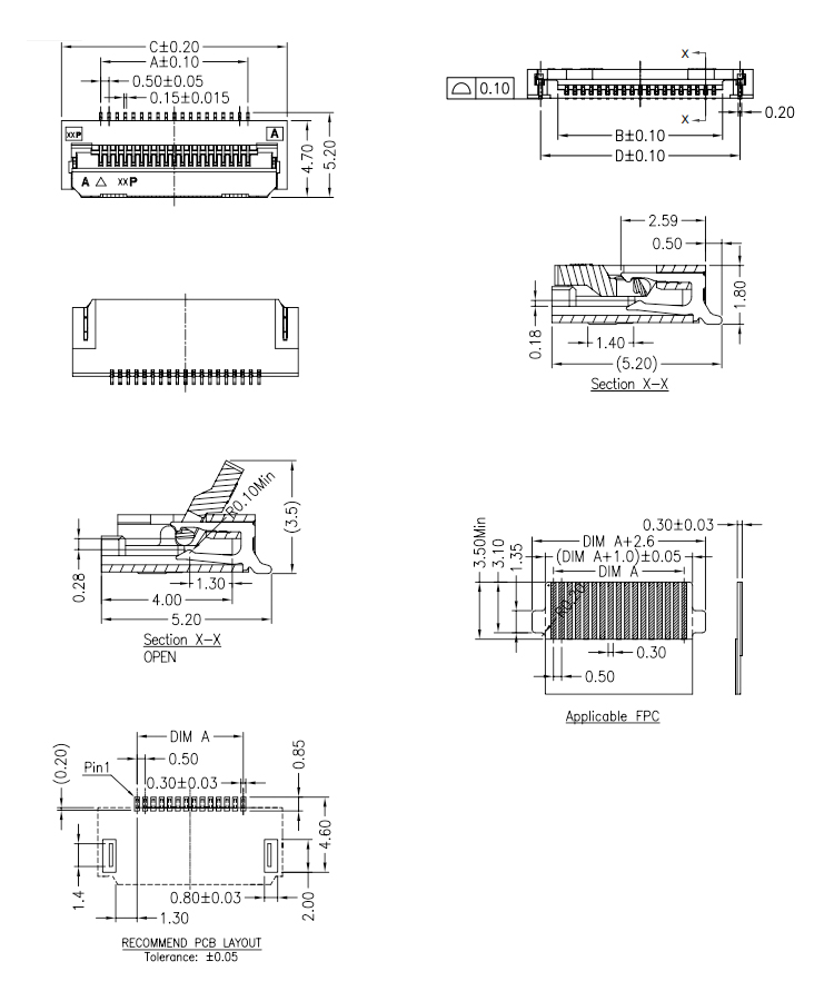 H1.8mm 0.5 Pitch Lock Type 4-60Pin FFC FPC Connector Product Item:FPC0518I-XXXRK-BBXXR Housing:Thermoplastic High Temp.UL94V-O Actuator:Thermoplastic High Temp. UL94V-O Contact:Copper Alloy Fitting Nail:Copper Alloy 05 Pitch Lock Type 4-60Pin FFC FPC Connector Inquiry Send Email Datasheet