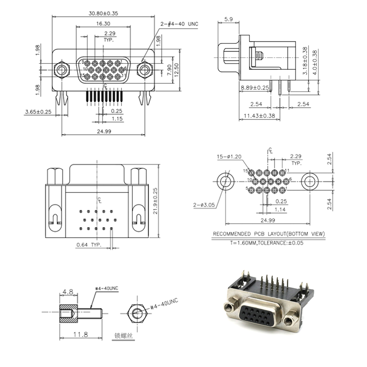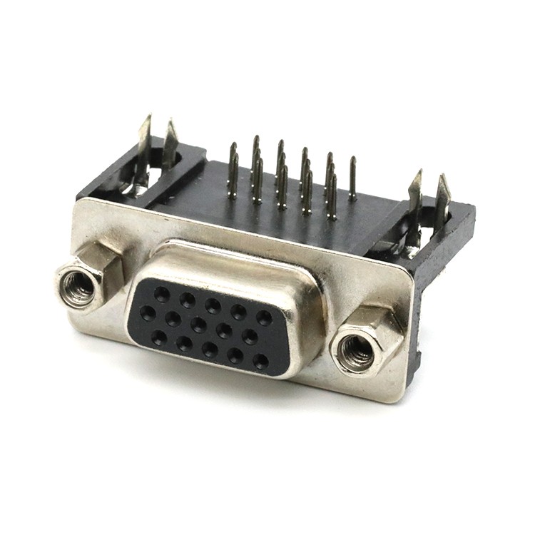 High DB Connector 15P D-SUB VGA Female Connector Right Angle Product Item:HDR15-CFXX5T-001 Insulator:PBT UL94V-O Pin:15Pin Gender:Female Color:Black High DB Connector 15P D-SUB VGA Female Connector Right Angle 90Degree Inquiry Send Email Datasheet