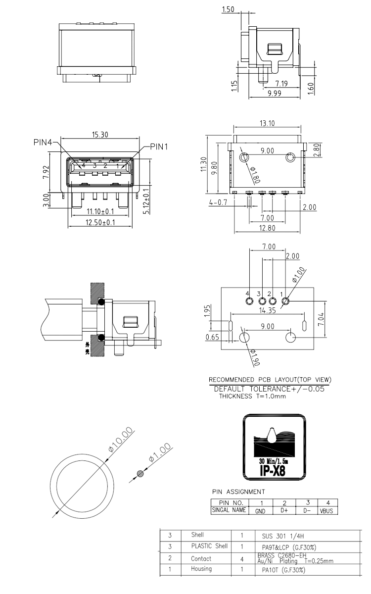 IP68 Rating Waterproof USB 2.0 Type A Female DIP Connector 4Pin for Mobile Phone Product Item:U01-AFXX5R-W003 Insulator:PA10T Gender:Female Pin:4Pin Waterproof:IP68 IP68 Waterproof USB 20 Type A Female DIP Connector 4Pin for Mobile Phone Inquiry Send Email Datasheet