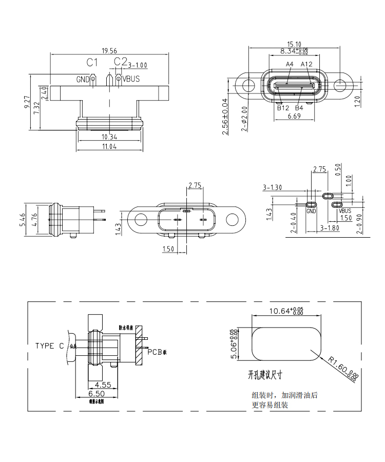 IP68 USB C Jack 3Pin Waterproof USB C Female Connector For Wire Soldering Product Item:U06-CFXX5R-W118 Housing:PA9T(30%G.F) Contact: Phosphor Bronze Current Rating:3A Dielectric Withstanding Voltage:100 V R.M.S. USB C Jack 3Pin Waterproof USB C Female Connector For Wire Soldering Inquiry Send Email Datasheet