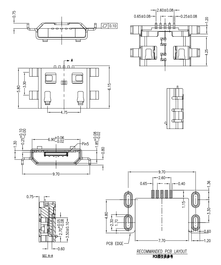 Micro B USB 2.0 Female Connector Socket Jack Smt Type Micro USB Female Connector Product Item:U01-BFXX5R-520 Housing:High Temperature Thermoplastic with g.f,UL94V-O Contact:Copper Alloy Current Rating:1.8A Dielectric Withstanding Voltage:100 V R.M.S. Micro B Type USB 20 Female Connector Socket Jack Smt Micro USB Female Connector Inquiry Send Email Datasheet