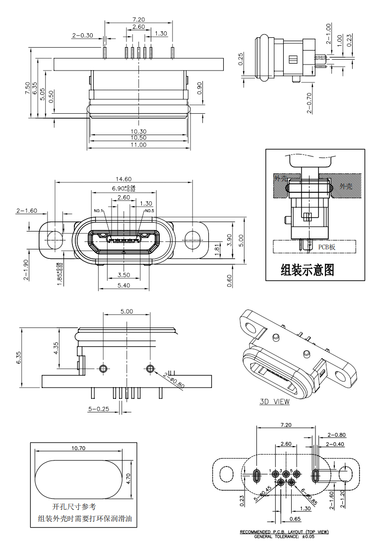 Micro USB 5P Connector IP68 Waterproof Micro USB 2.0 B Female Connector with Screw Product Item:U01-BFXX5R-W030 Housing:High Temperature Thermoplastic Contact:Copper Alloy Current Rating:1.5A Dielectric Withstanding Voltage:500 V R.M.S. Micro USB Jack 5Pin IP68 Waterproof Micro USB 20 B Female Connector with Screw Inquiry Send Email Datasheet