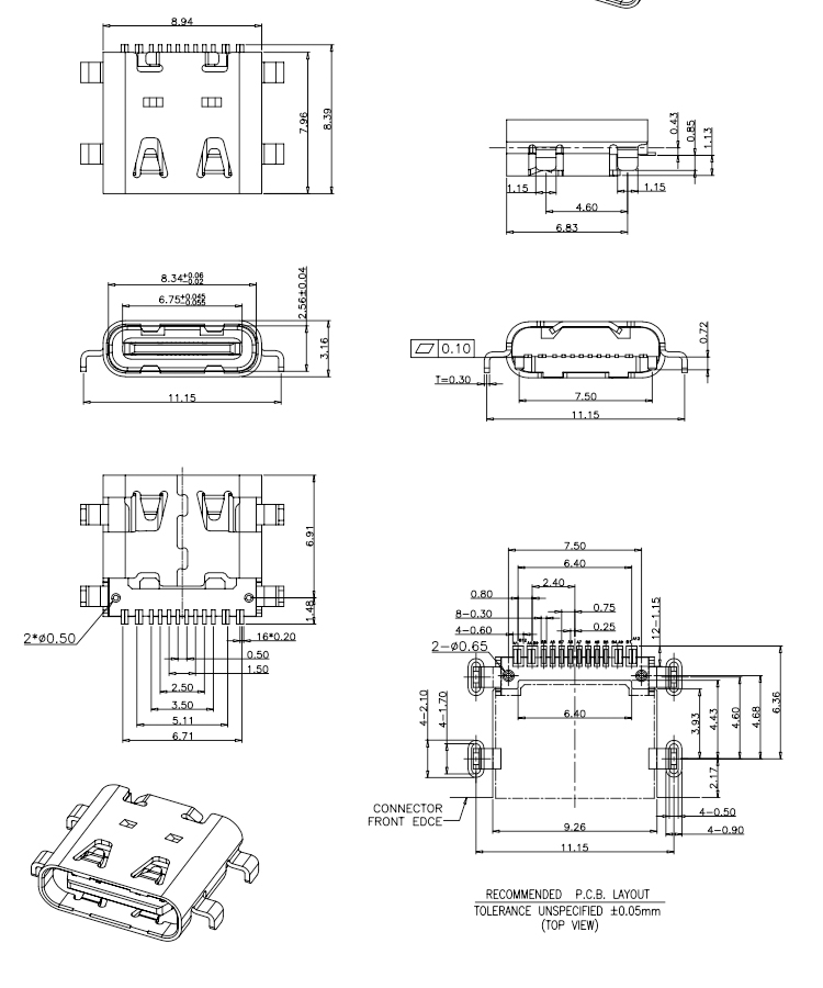Mid Mount 1.12MM USB Type C Female Connector 16P SMT L7.96MM USB C Female Connector Product Item:U06-CFXX5R-096 Housing:LCP UL94V-0 Shell:Stainless Steel Current Rating:5A Dielectric Withstanding Voltage:500V AC/rms Mid Mount 112MM USB Type C Female Connector 16P SMT L=796MM USB C Socket Connector Inquiry Send Email Datasheet