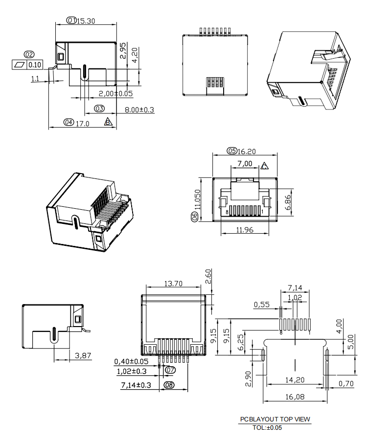 Mid-Mount 4.2MM SMT RJ45 Connector 8Pin 90 Degree RJ45 Network Data Transmission Socket Connector Product Item:RJ01-3XBX-138 Housing:Glass Filled Polyester Contact: Phosphor Bronze Current Rating:1.5A Dielectric Withstanding Voltage:500V AC/rms Mid-Mount 42MM SMT RJ45 Connector 8Pin 90 Degree RJ45 Network Data Transmission Socket Connector Inquiry Send Email Datasheet