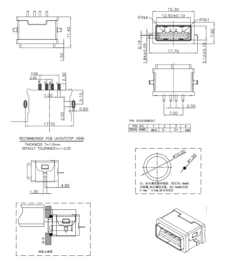 Mid Mount 4P USB Waterproof Female Connector IPX7 USB 2.0 Female Connector Product Item:U01-AFXX5R-W015 Housing:PA10T (30%G.F) Contact:C7025 Current Rating:3A Dielectric Withstanding Voltage:100 V R.M.S. Mid Mount 4Pin IPX7 Waterproof USB Female Connector USB 20 Female Connector Inquiry Send Email Datasheet