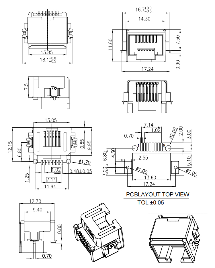 Mid Mount 7.5MM SMT Type RJ45 Female Connector Product Item:RJ01-X5AX-071 Housing: Glass Filled Polyester,UL94V-0 Contact: Phosphor Bronze Current Rating:1.5A Plating :Gold Flash Plating Over Nickel Mid Mount 75MM SMT Type RJ45 Female Ethernet Connector Inquiry Send Email Datasheet