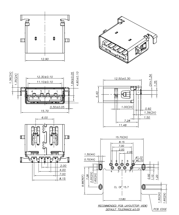 Mid Mount USB 3.0 A Female Connector 9P SMT USB 3.0 Connector Product Item:U03-AFXAXX-5027-V1 Housing:LCP UL94V-0 Contact:Copper Alloy Current Rating:1.8A Dielectric Withstanding Voltage:100 V R.M.S. Mid Mount L=1250mm USB 30 A Female Connector 9P SMT USB 30 Connector Inquiry Send Email Datasheet