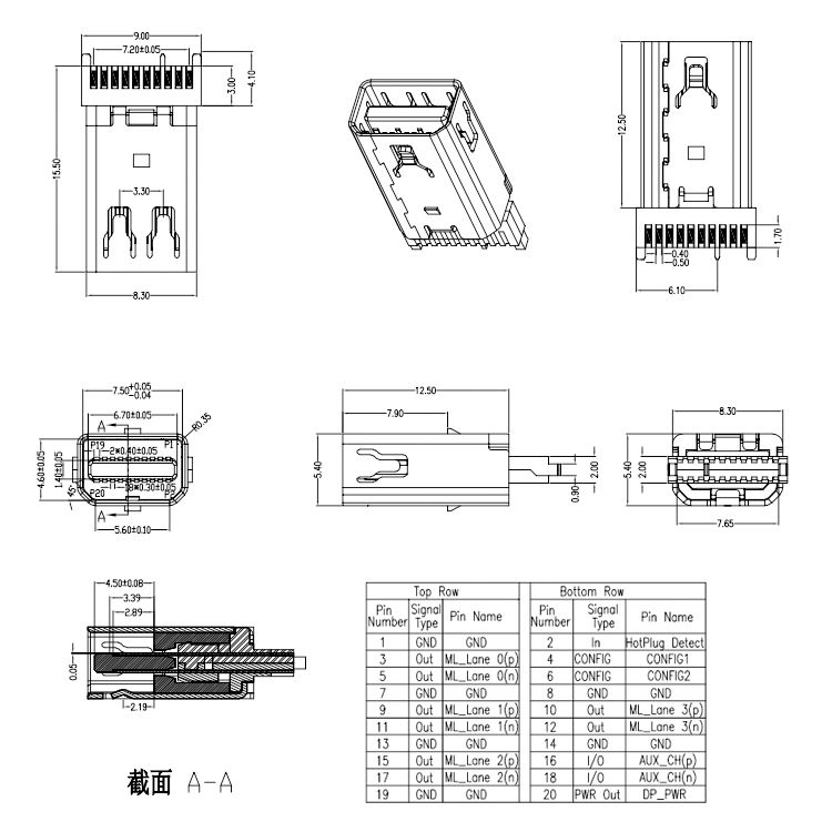 Mini DP Connector Vertical 20Pin DP Female Connector for Wire Soldering Product Item:MDP09-FXX5T-003-A Housing:LCP UL94V-0 Contact:C5191 Current Rating:0.5A Dielectric Withstanding Voltage:500V AC/rms Mini DP Connector with Lock Pin Vertical 20P DP Female Connector for Wire Soldering Inquiry Send Email Datasheet
