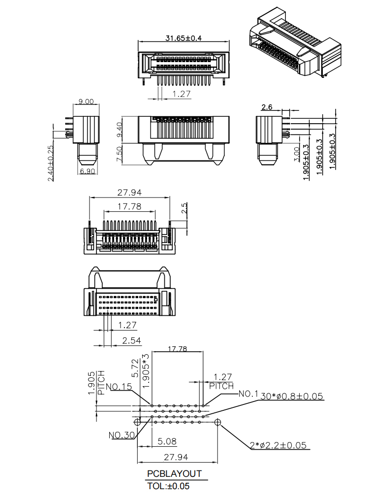 OPS 30P Female Header Connector PBT Black Pitch Board to Board Connector Product Item:OPS-XFXX5T-002 Housing:PBT UL 94V-0 Black Contact:C5191-H, T=0.3mm Current Rating:1.0A Dielectric Withstanding Voltage:500V AC/rms OPS 30P Female Header Connector PBT Black 127 Pitch Board to Board Connector Inquiry Send Email Datasheet