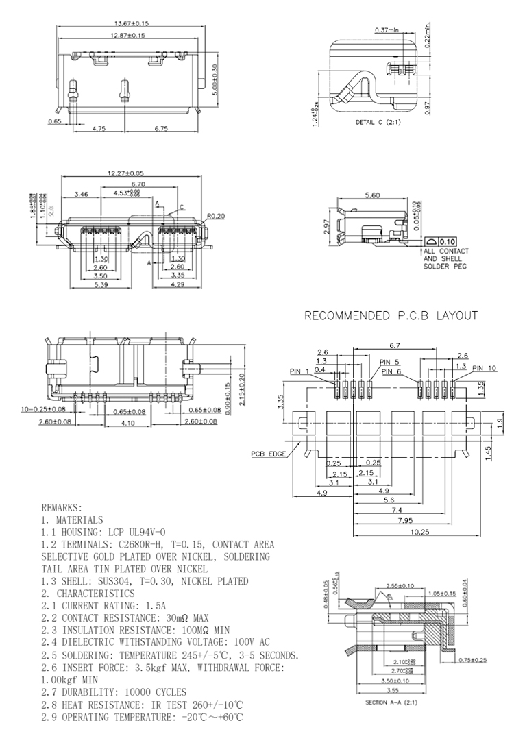 PCB Soldering Connector SMT Micro USB 3.0 Type B 10P Female Socket Connector Product Item:U04-BFXX5R-006 Insulator:LCP Gender:Female Pin:10Pin Color:Black PCB Soldering Connector SMT Micro USB 30 Type B Female Socket Connector Inquiry Send Email Datasheet