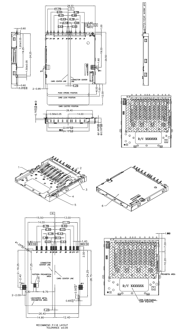 Push-Push Type SD Card Connector 11Pin 3.25H SMT SD Memory Card Connector Product Item:SD-11XX5R-005 Housing:High Temperature Plastic UL94V-O Contact:Copper Alloy Current Rating:0.5A Dielectric Withstanding Voltage:500V AC/rms SD Card Connector 11Pin 325H Push-Push Type SD Memory Card Connector Inquiry Send Email Datasheet