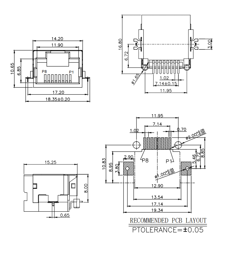 RJ45 Connector SMT Type Mid Mount TAB UP 8.0 RJ45 8P8C Female Connector Product Item:RJ01-X51X-045 Housing: LCP BLACK UL94V-0 Gender:Female Current Rating:1.5A Color:Black SMT Type Mid Mount TAB UP 80 RJ45 8P8C Female Ethernet Connector Inquiry Send Email Datasheet