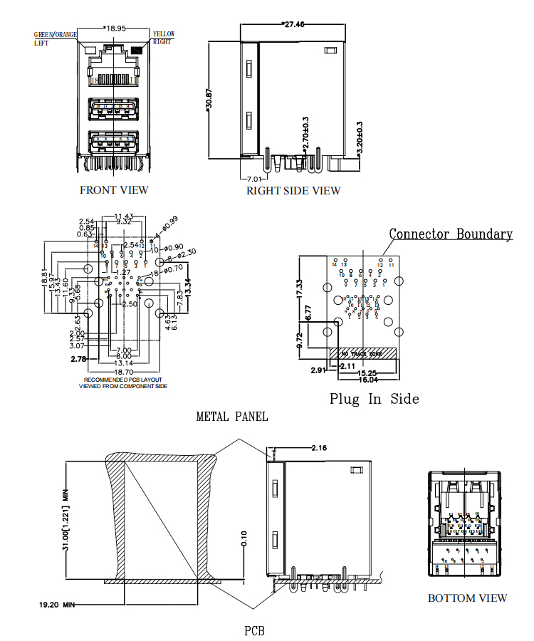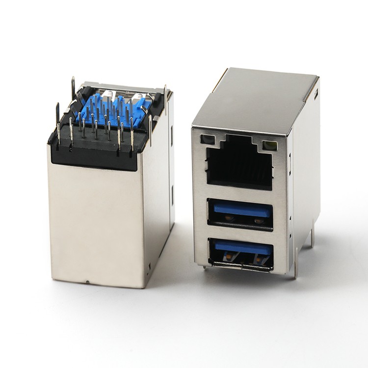 RJ45 Dual USB 3.0 Female Connector with LED Modular Jack RJ45 PCB Ethernet Connector Product Item:RJ01-35AX-204 Housing:PBT UL 94V-0 Black Contact: Phosphor Bronze Current Rating:1.5A Dielectric Withstanding Voltage:500V AC/rms RJ45 Dual USB 30 Female Connector with LED Modular Jack RJ45 PCB Connector Inquiry Send Email Datasheet