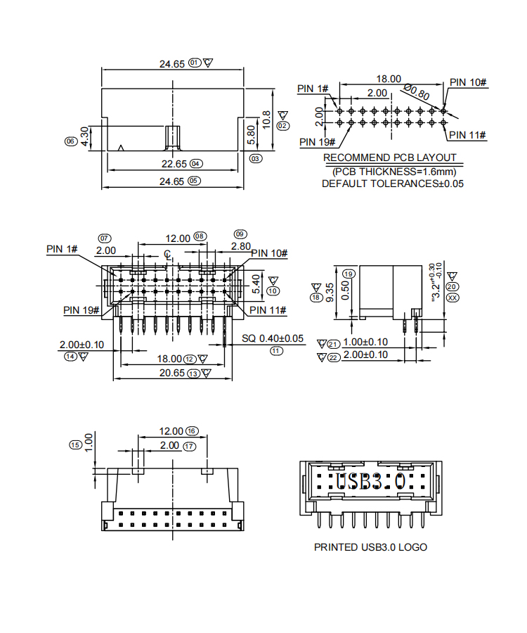 Right angle USB 3.0 19P 20P 19 pin male box header connector Product Item:BH01-MXDXX-0001 Housing:PA6T.UL94V-0 Blue/Black Contact:Brass Current Rating:1.5A Dielectric Withstanding Voltage:500V AC/rms Right Angle USB 30 19P 20P 19 Pin Male Box Header Connector 90Degree Inquiry Send Email Datasheet
