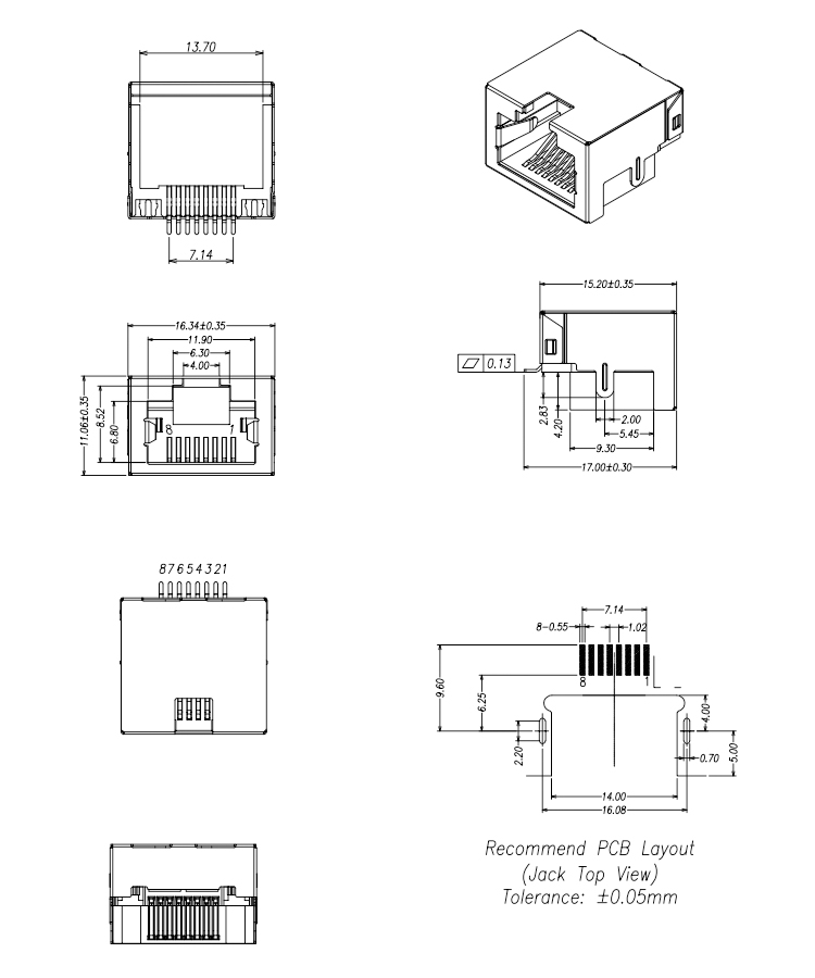 SMD Type RJ45 Connector Mid Mount 4.2MM Single Port RJ45 Female Connector Product Item:RJ01-X50X-076 Housing:LCP UL94V-0 Gender:Female Contact:Phosphor Bronze Shell:Brass Mid Mount 42MM Single Port RJ45 Female Connector Inquiry Send Email Datasheet