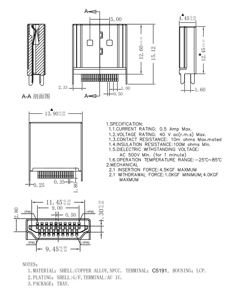 Splint 1.6mm HDMI 19P Male Connector SPCC Shell with Nickel Plated Product Item:HD01-AMXX5T-001-V3 Gender: Male Pin number: 19Pin Color: Black Insulator: LCP Splint 16mm HDMI 19P Male Connector SPCC Shell with Nickel Plated Inquiry Send Email Datasheet