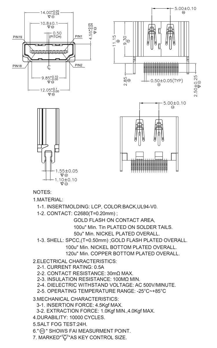 Straddle Mount 1.6MM Dip Type High Definition Multimedia Interface A Female Connector Product Item:HD01-AFXX5T-001-V4 Housing:LCP UL94V-0,Black Contact:C2680(T=0.20mm) Shell:SPCC,(T=0.50mm) Current Rating:0.5A 19Pin Straddle Mount 16MM Dip Type High Definition Multimedia Interface A Female Connector Inquiry Send Email Datasheet
