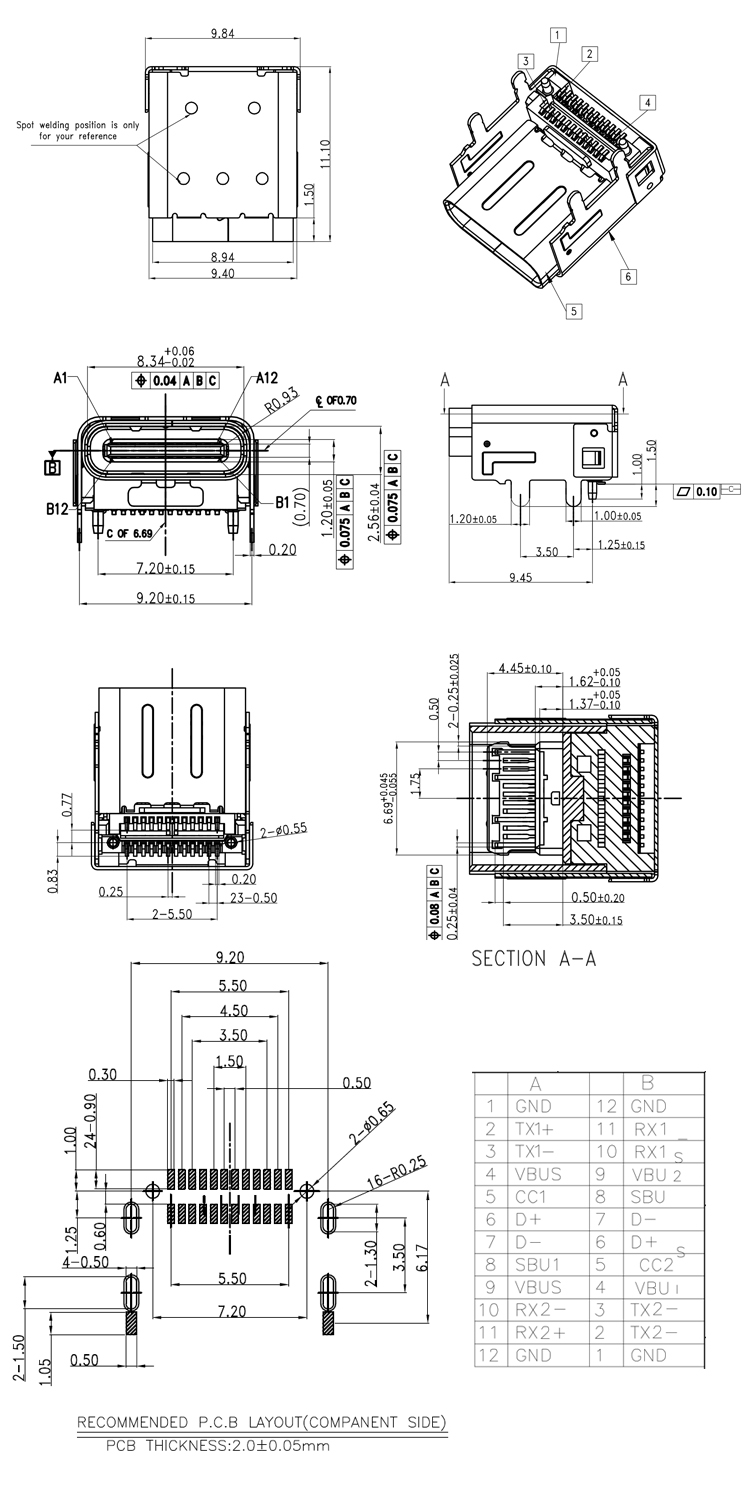 Surface Mount CH=3.4mm,L=11.1mm USB 3.1 C Female Socket Connector Product Item:U06-CF2A5R-036 Housing:High Temp. Plastics,UL94V-0 Contact:Copper Alloy Current Rating:5A Shell:Stainless Steel Surface Mount Vertical USB 31 C Female Socket Connector Inquiry Send Email Datasheet