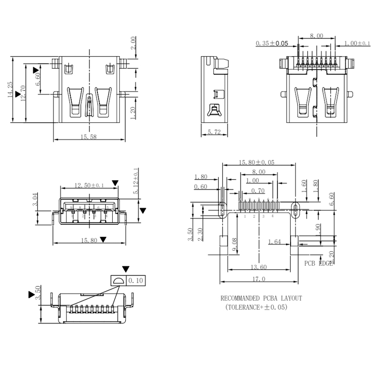 Surface Mount USB 3.0 A Type Female Connector Product Item:U03-AFXAXX-5003-V2 Housing:LCP&PA9T UL 94V-0 Contact:Bronze Current Rating:1.5A Dielectric Withstanding Voltage:500V AC/rms USB 30 AF Connector SMT Type USB 30 A Female Connector Inquiry Send Email Datasheet