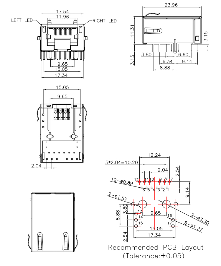 Tab Down RJ45 Female Connector Dip Type Ethernet RJ45 Lan Jack Female PCB Connector Product Item:RJ01-X6BX-198 Housing:PBT UL 94V-0 Black Contact: Phosphor Bronze Current Rating:1.5A Dielectric Withstanding Voltage:500V AC/rms Tab Down RJ45 Female Connector Dip Type Ethernet RJ45 Lan Jack Female Connector Inquiry Send Email Datasheet